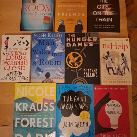 Bokpakke med romaner av ulike forfattere - pocketutgaver. Et variert utvalg romaner fra forskjellige forfattere og utgivelsesår.