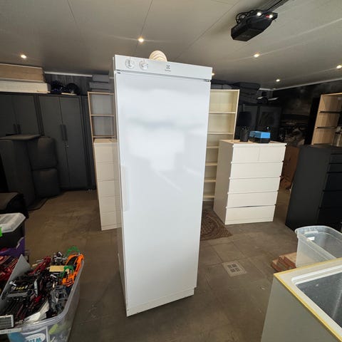 Kjøpte dette kombiskapet nylig. Fikk demostrert at det fungerte før jeg kjørte hjem med det. Når jeg skulle sette det på i dag, virket bare kjøledelen. Lampen til frysedelen blinker. Har ikke peiling på dette, så jeg bare gir det bort. Mulig det bare er en bagatell. Da får man iallefall et billig og bra skap. (Nyvasket)
