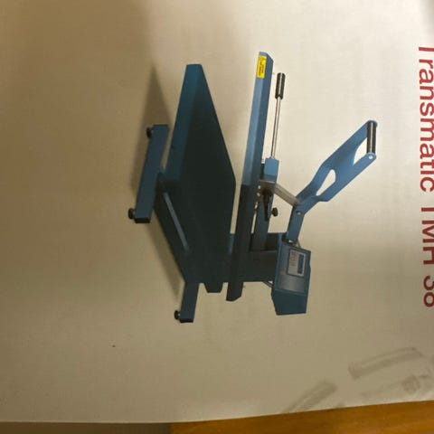 Selger en gammel tekstil/varmepresse. Ekstremt mye extrautstyr som følger med til å kunne presse logo på tekstil. Funker som den skal.
