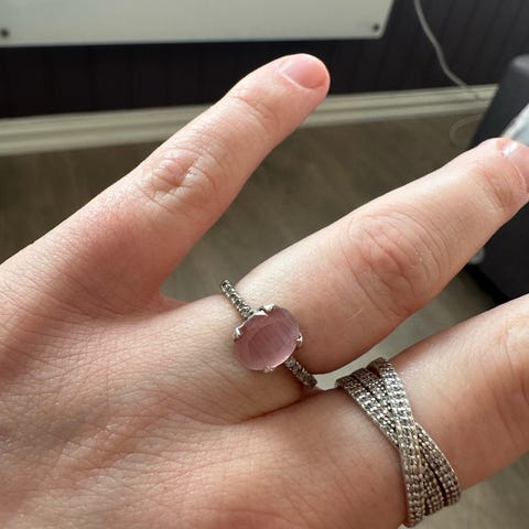 Helt nydelig vintage ring i 925 sølv med slipt lilla ametyst. Ringen er arvet og er i god stan for alderen, det er noen flekker på innsiden av ringen og den er litt svarte på ringen på baksiden - jeg tror det kan pusses. Men jeg vil ikke gi noen garanti. Det syntes uansett ikke når man bruker den da det er på innsiden og bak. Den måler ca 19-20 mm på innsiden.