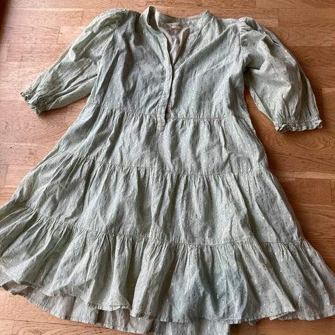 MISSMAYA sommerkjole for dame i størrelse L. Kjolen er blå og laget i viskose. Den har korte ermer, knappestolpe i front og markert liv med innfelt strikk. Skjørtet er lett utsvingt med volangfelt som gir et luftig uttrykk. Passer til bruk på varme dager, både til hverdags og enkle anledninger. Aldri brukt, kun prøvd på :) nydelig og lett kjole. Kjøpt ny for 1600 kr.