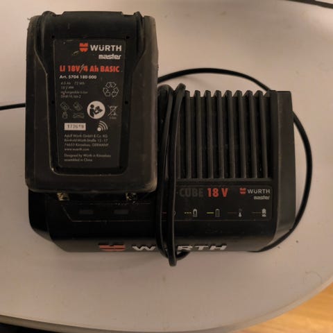 Würth lader med tilhørende 18V Li-Ion batterier.