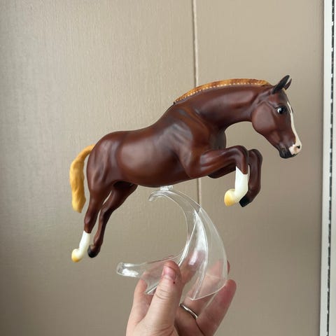 Stativet knakk desverre etter tok bilder, den blir fjernet men breyer sender helt ny gratis hvis sender de mail, jeg kan evt gjøre dette på forhånd. Men dette er noe som ofte skjer modeller med lignende stativ, så jeg anbefaler kjøpe stativ fra noen som lager i metall.