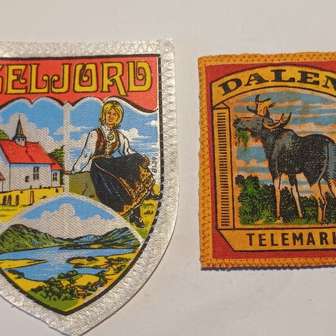 Seljord og Dalen. Ubrukte tøymerker fra noen år tilbake. Ble solgt på campingplasser og typiske turist steder. Selges samlet og kam sendes med posten.