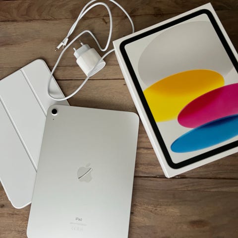 Selger en pent brukt Apple iPad 10.Gen med 64 GB lagringskapasitet.