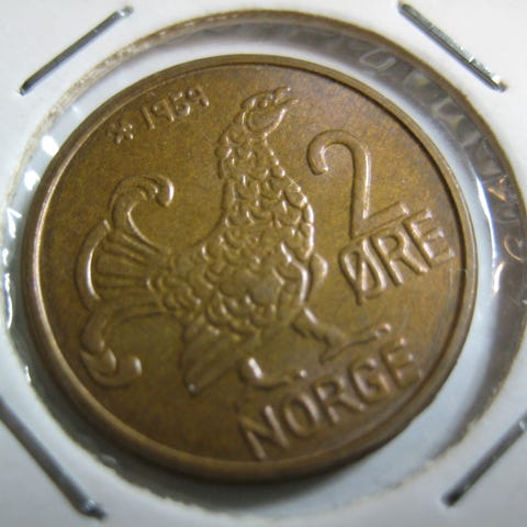 2 øre 1959 kv 0 selges kr 130.-+porto