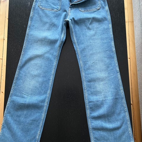 Valentino jeans for dame i størrelse M med livvidde W28. Buksen er i blå denim laget av bomull med stretch. Klassisk femlommersmodell med glidelås og knapp i front. Passer til hverdagsbruk og kan kombineres med ulike topper og sko for både avslappede og mer pyntede antrekk. Bootcut modell.