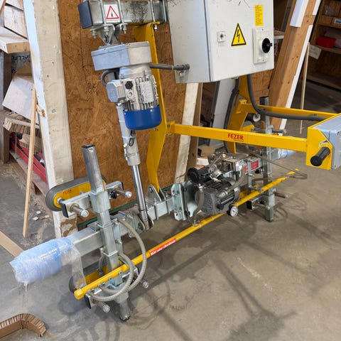 Atlas Copco SM A1-500-2 pneumatisk gjengearm for bearbeiding av gjenger i metall eller andre materialer. Armen er montert på arbeidsbord og har leddet konstruksjon som gir god rekkevidde og stabil føring av verktøyet. Maskinen drives av trykkluft og er egnet for verksted- og industribruk der det er behov for presis og repeterbar gjenging i ulike posisjoner.