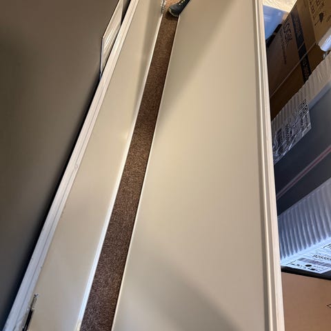To stk skyvedører fra garderobemannen. 74,5 cm i bredden og 235 cm i høyden + regulerbare hjul oppe og nede slik at se passer i høyde alt dra 235 til 244. Skinne oppe og nede følger med.