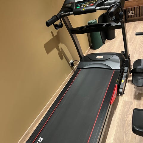 Håndtakene har integrerte betjeningsknapper for enkel styring under bruk. Løpebåndet er bredt og egnet for både gange og løp. Tredemøllen passer til innendørs bruk i hjemmegym eller treningsrom.