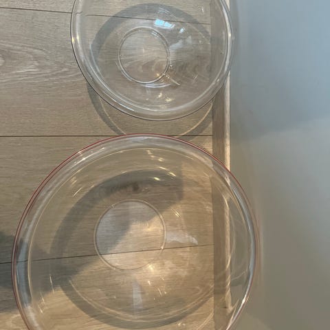 Jeg selger dette settet med fire plastboller fra IKEA. Bollene er i gjennomsiktig hvit plast. Selges samlet for 30 kr.