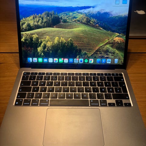 Apple MacBook bærbar PC med 13-tommers skjerm i sølvfarge.