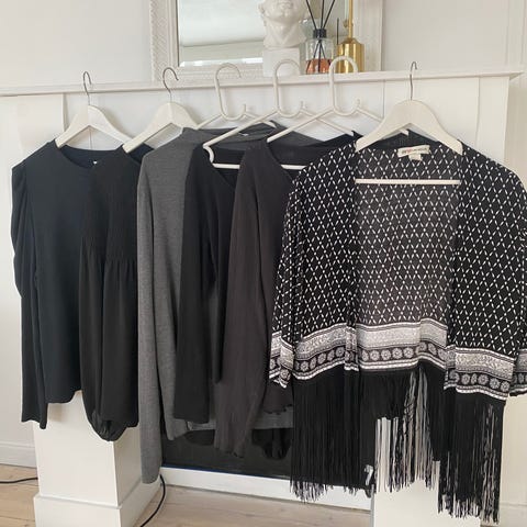 8 plagg, 3 bukser, 2 skjørt, 2 topper og en kjole. Passer L/XL. Hentes Helle etter vipps. Event 250,- inkl frakt om det må sendes