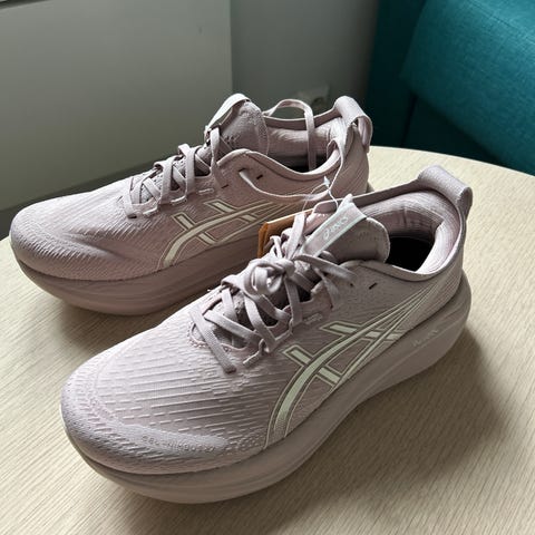 Populære ASICS Novablast 4 selges ubrukt. Fargen er lys lilla.