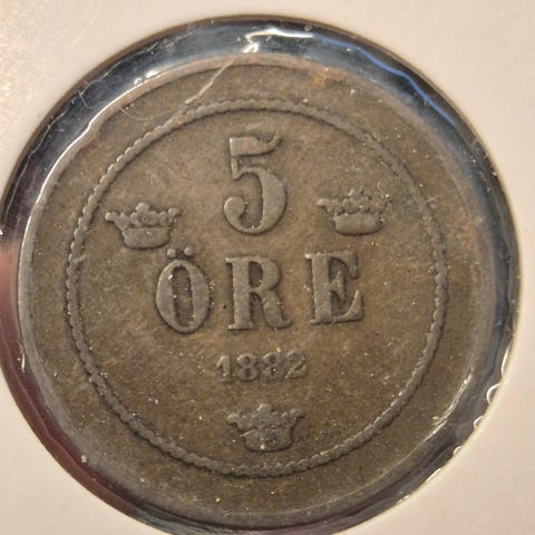 5 øre sverige 1883 kv 1+ selges kr 180.-+porto