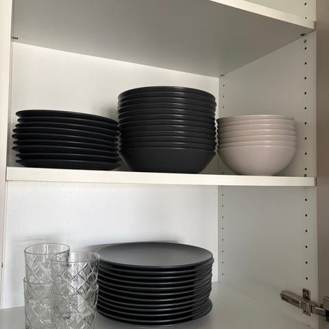 Diverse tallerkener, skåler, krus og drikkeglass fra IKEA.
