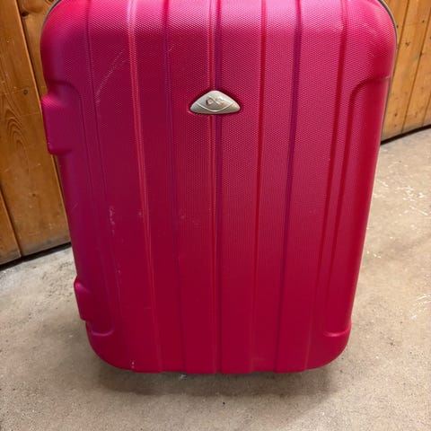 Kofferten er rosa og har teleskophåndtak og hjul for enkel transport. Ytterskallet er i hard plast med markert rutemønster. Passer som trillekoffert til reiser der man ønsker en lett og robust bagasjeenhet.