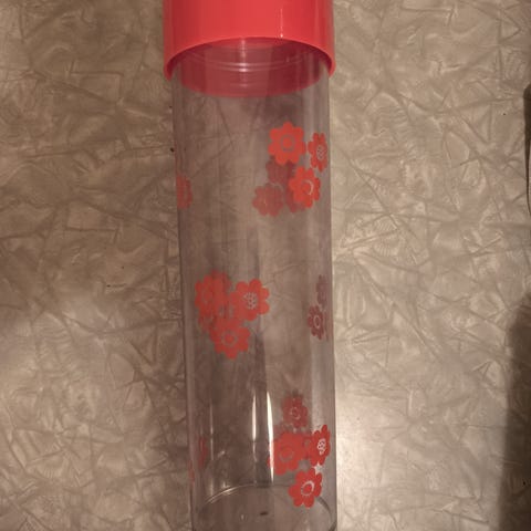 Kul 70-talls spaghetti boks Dansk design Erik Kold med røde blomster. Litt porøs i lokket. Som de gjerne blir når de er rundt 50 år gamle. Men har vært i bruk frem til for ca 1 år siden.