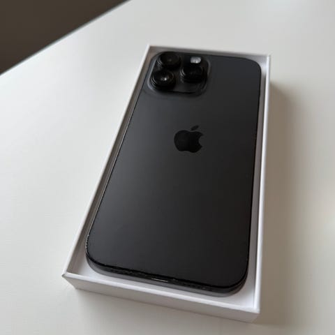 Selger en pent brukt Iphone 15 Pro Max, Blue titanium, 256GB