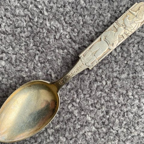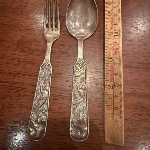 Gullgåsa BARNEBESTIKK av Tyrihans / Sølvplett / gaffel og skje til barn