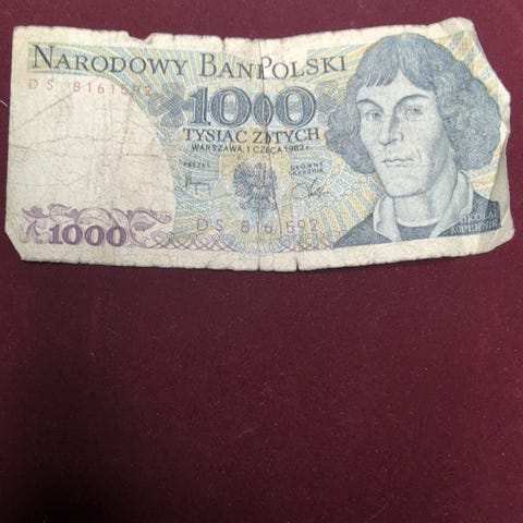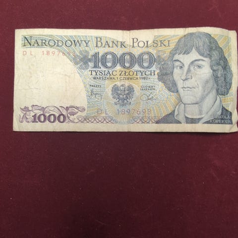 Narodowy Bank Polski 1000 zloty seddel. Polsk pengeseddel med pålydende verdi 1000 zloty. Egnet som samleobjekt for mynter og sedler eller som eksempel på eldre polsk valuta.