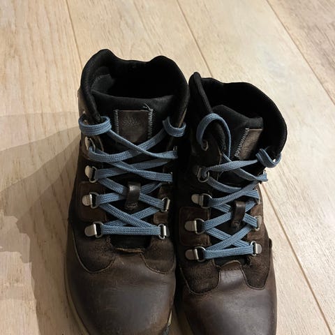 Alfa tursko i skinn for dame i størrelse 35. Skoene er brune med polstret ankelparti og kraftig yttersåle med grovt mønster egnet for fottur. Overdelen er i lær med snøring og metallhemper for god tilpasning rundt foten. Passer til turbruk og fotturer der det er behov for stabile og støttende tursko.