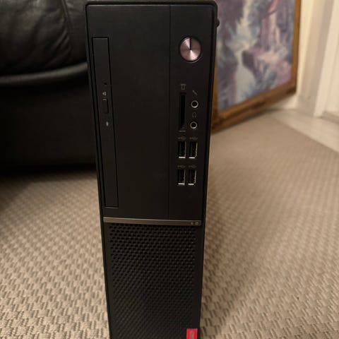 Kompakt stasjonær datamaskin i mini-formfaktor fra Lenovo sin ThinkCentre-serie. Kabinettet er lite og plasseringsvennlig, egnet for skrivebord eller skjult montering bak skjerm.