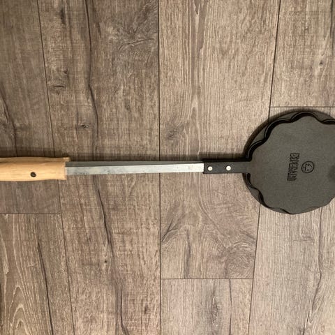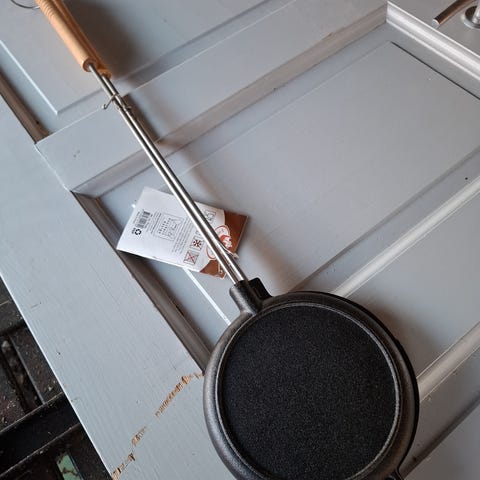 Staal toastjern støpejern med trehåndtak