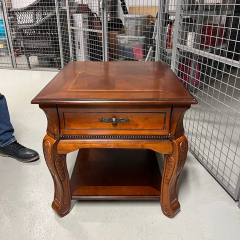 Selger to stykk like sidebord. Har bare tatt bilde av det ene, men vi har to. Hele og pene. 1000,- pr stk. Må hentes denne uken! Hytta ligger et steinkast fra Fyri.