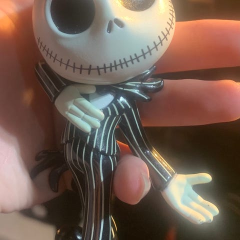 Funko Pop Jack Skellington samlefigur i vinyl. Figuren forestiller Jack Skellington i stripete dress med karakteristisk hodeform og detaljerte ansiktstrekk. Passer som samleobjekt eller utstillingsfigur på hylle eller skrivebord. Figuren er laget i hard plast/vinyl og har flat såle under føttene for stabil plassering.