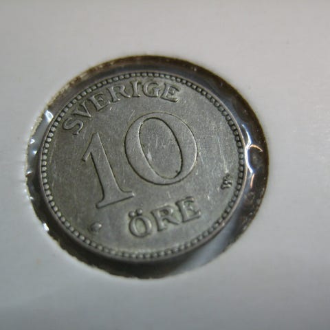 10 øre sverige 1919 sølv kv 1/ 1+ selges kr 30.-+porto