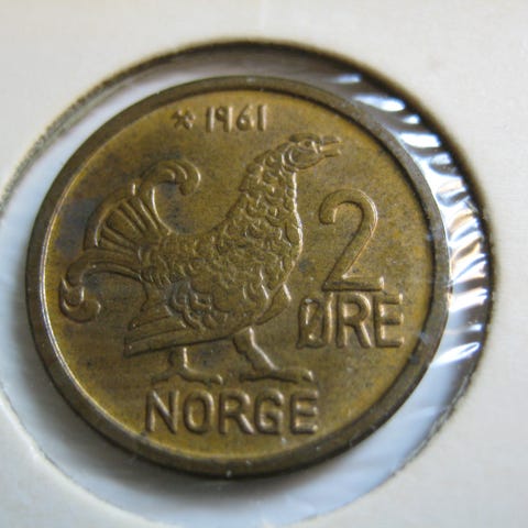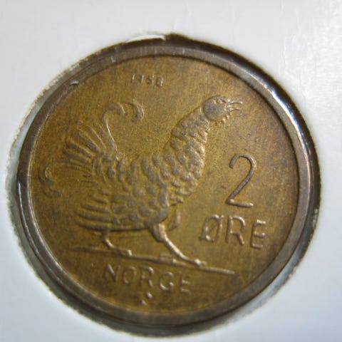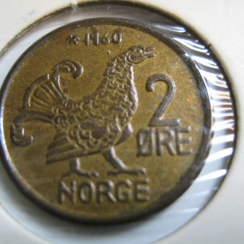 2 øre 1958 kv 0 selges kr 200.-+porto