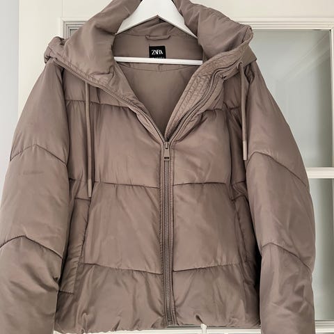 Zara vinterjakke for dame i brun farge, størrelse M. Jakken er laget i polyester og har et blankt ytterstoff med vattert innside. Den har stor krage med imitert pels, frontlukking med knapper og flere frontlommer. Meget anvendelig jakke! Litt retro i uttrykket og er megakul!