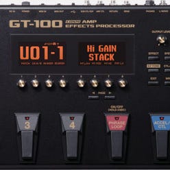 Kraftig GX-100 lydverktøy i en kompakt gitar/bassprosessor, med berøringsskjerm, multifunksjons fotbrytere og en innebygd expressionpedal.
