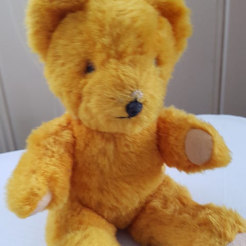 Et flott samlerobjekt med masse vintage-sjarm. Perfekt som dekor i et vintagehjem, på et barnerom, som et kosedyr eller på en samlerhylle. En skikkelig Ole Brumm - bamse!