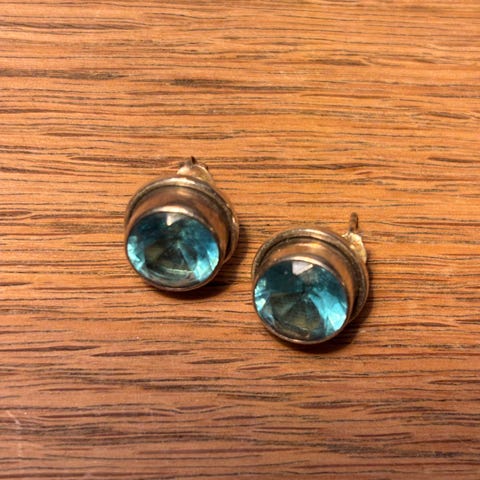 Selger pen ørepynt med lilla sten, stemplet 925s og mesterstempel.