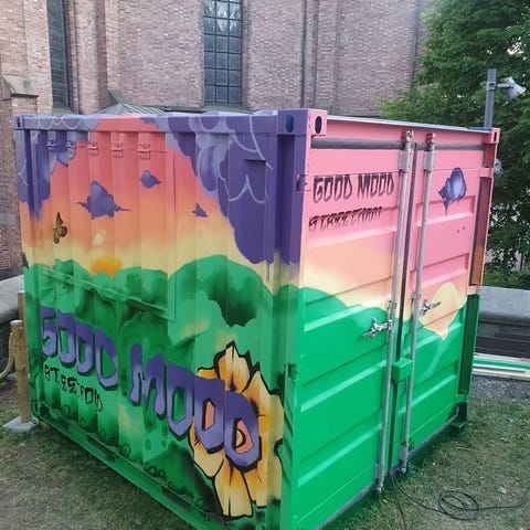 Selger en brukt container som tidligere har vært brukt som hurtigmatrestaurant.