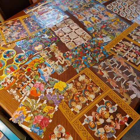 9 ark, ett av de er det vel fjernet to fra. Selges samlet. Porto 55,-