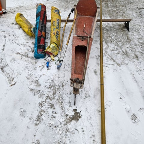 Et komplett IGLOO telt med stenger og teltduk. Dette er et eldre kabelskjøtetelt som består av robuste glasfiberstenger og teltduk. Passer godt til isfiske f eks.