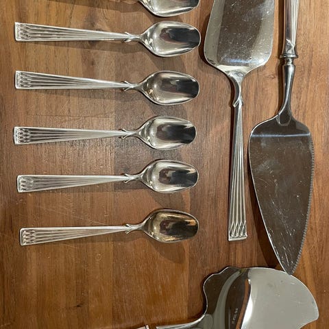 Opphøiet rose fiskespade, skaft i 830s. Pris 700kr