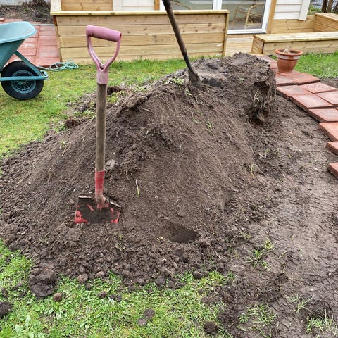 Blanding av plantejord og litt småsteiner i
