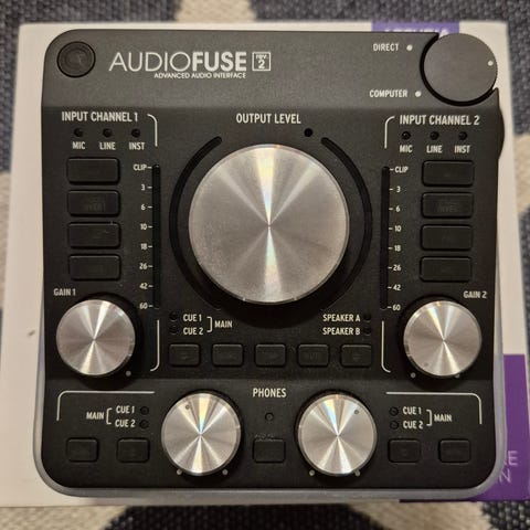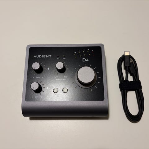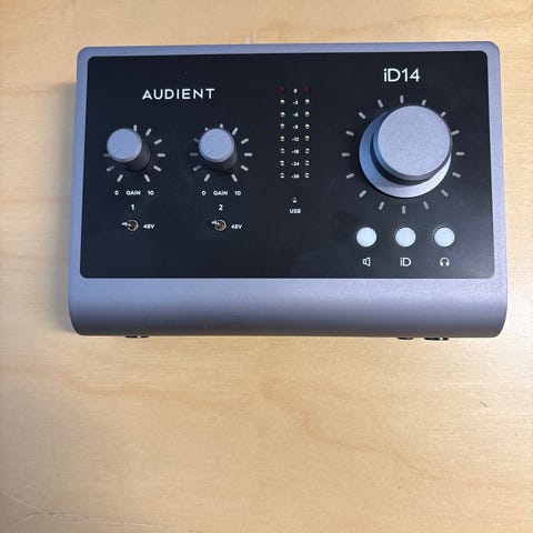Pent brukt Audient ID4 MkII med original emballasje og kvittering, kjøpt fra 4sound februar 2025. Et lite merke som vist på bilde.