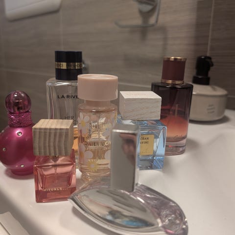 Samling med ulike dameparfymer fra flere merker. Flaskene har forskjellige størrelser, fasonger og farger, og inneholder ulike dufttyper. Passer for den som ønsker flere varianter av parfyme i én pakke. Nøyaktig innhold og mengde per flaske bør avklares med selger ved behov.30 ulike.