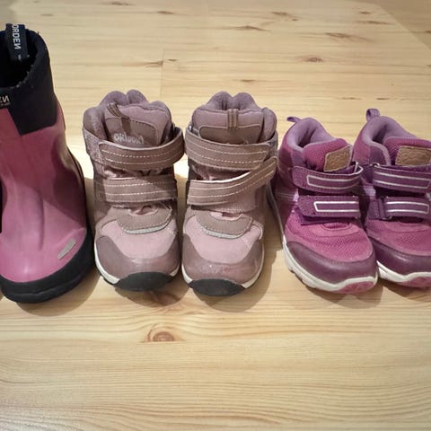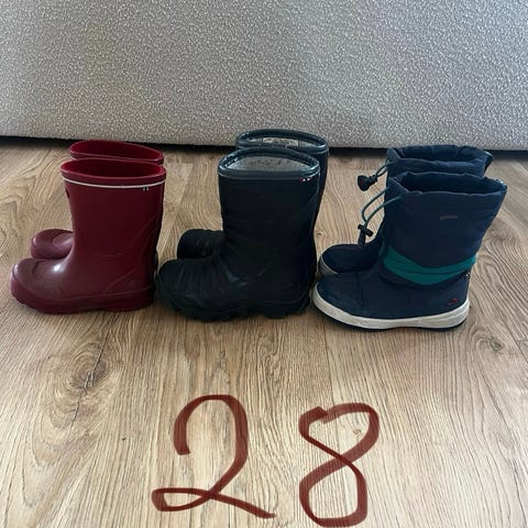 Viking barnesko i størrelsene 27-31 for unisex. Bildet viser ulike typer sko og støvler som passer til barn, blant annet modeller som kan egne seg til bruk i hverdagen og i vått eller kjølig vær. Skoene er tilpasset barneføtter i størrelse 27-31 og kan brukes av både gutter og jenter, avhengig av passform og behov.
