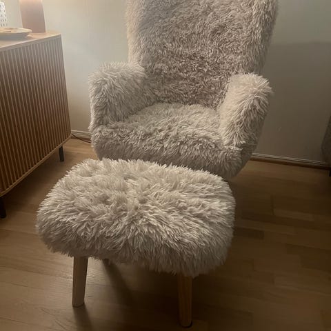 Off white teddy lenestol.Stolen er sjelden brukt og i veldig god stand. Den er komfortabel og stor.