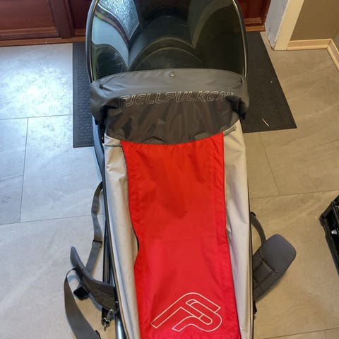 Selger denne Fjellpulken som er i god stand. Det følger med avtagbare ski som festes til veltebøylene med Fjellpulkens eget system. Dette gjør pulken vesentlig bedre å trekke i preparerte løyper, samtidig som den løftes fra snøen og det kalde underlaget. Hvis skiene blir slitt kan de enkelt byttes uten at man må kjøpe ny binding. Setet har sele og kan justeres fra sittende til helt flatt. Vindskjermen kan justeres. Draget har god trekksele med skulderstropper som gjør det enklere å trekke. Lasterom med glidelås foran.