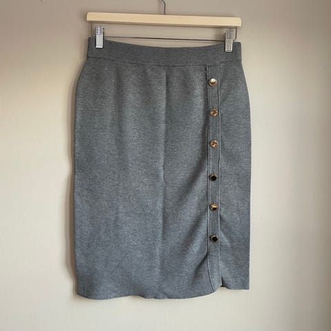 Skjørt som også er strikket.