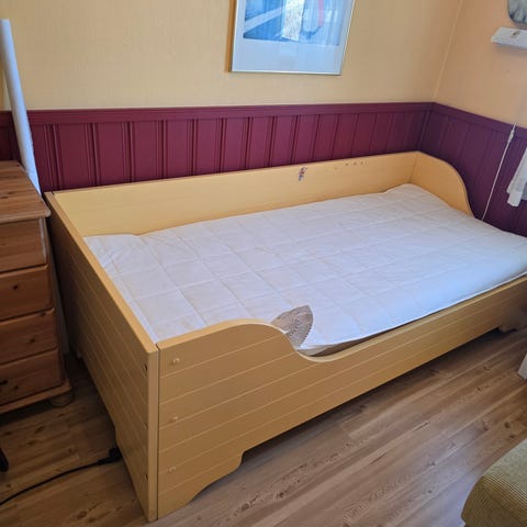 Seng som også kan frigjøres til å bli en krybbe. I god stand.