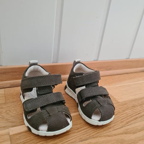 ECCO sandaler for barn i størrelse 23, unisex. Åpen modell med flere justerbare borrelåser over fot og rundt ankel for god tilpasning. Sandalene har lukket hæl. Kun brukt inne, ikke ute. Nypris: 700 kr