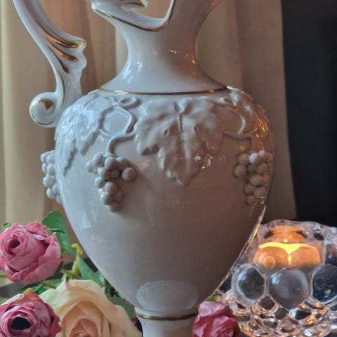 Kan brukes som vase eller til pynt. Noen merker. Tung kanne.